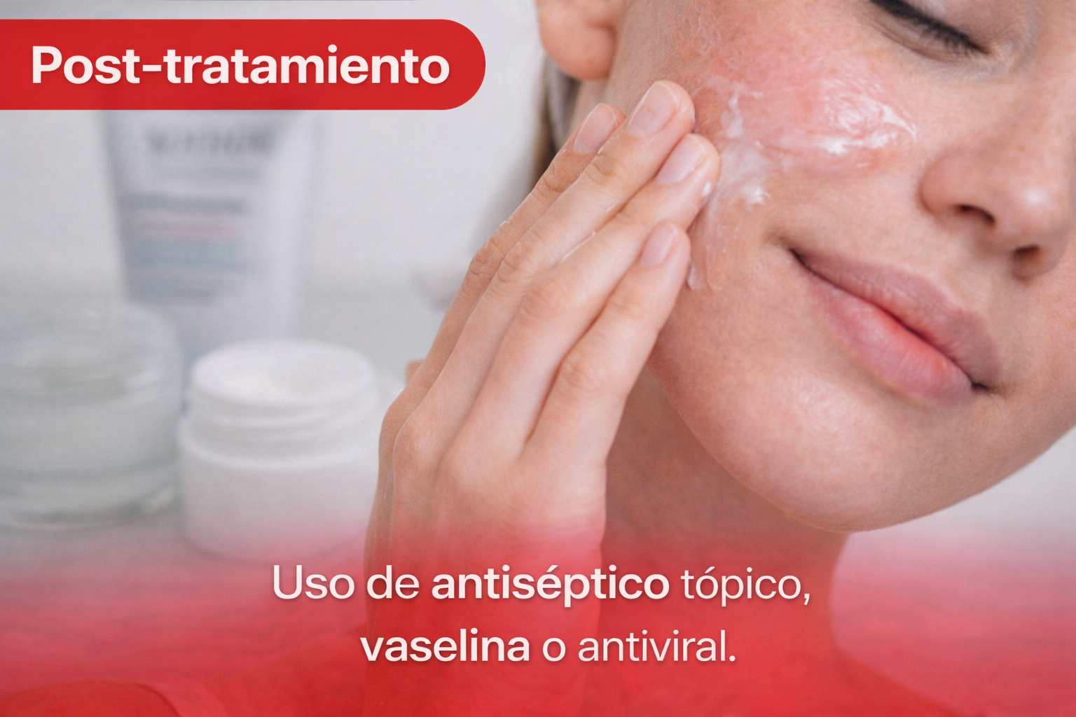 Uso de antiséptico tópico, vaselina o antiviral.