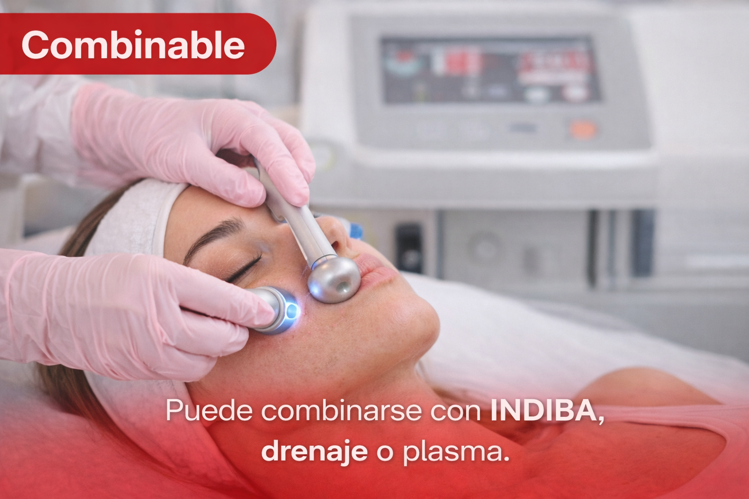 Puede combinarse con INDIBA, drenaje o plasma.